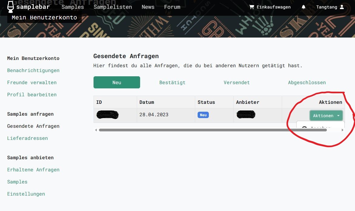 Anzeigeproblem bei gesendeten Anfragen